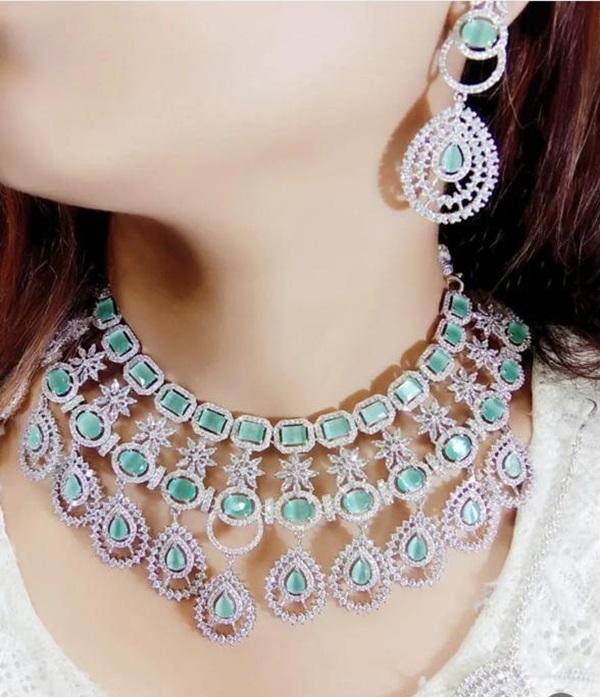 AD Necklace- Bridal Jewellery- CZ Necklace Green