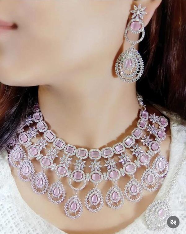AD Necklace- Bridal Jewellery- CZ Necklace Pink