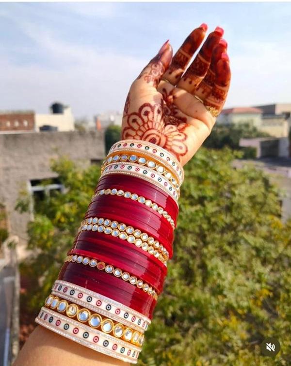 Chura Bangles- Red Kundan Chuda Bangles- (Customizable)