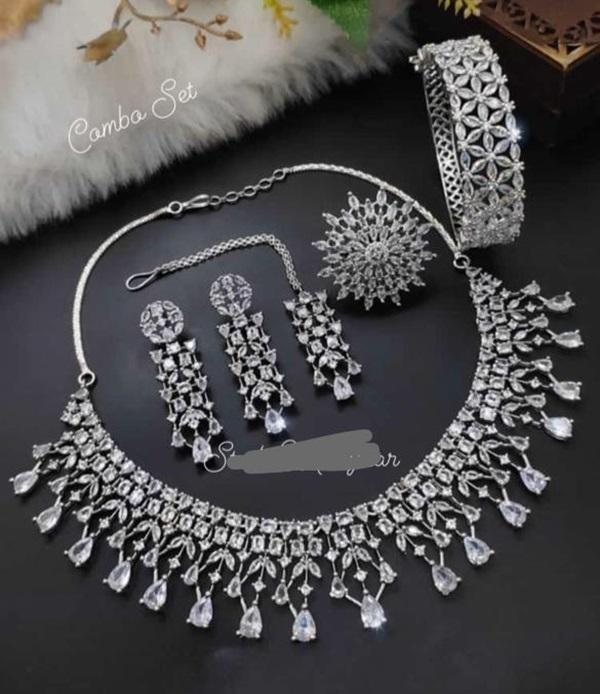 Combo Necklace Set With Earrings, Mangtika, Ring & Bracelet- CZ Necklace Combo