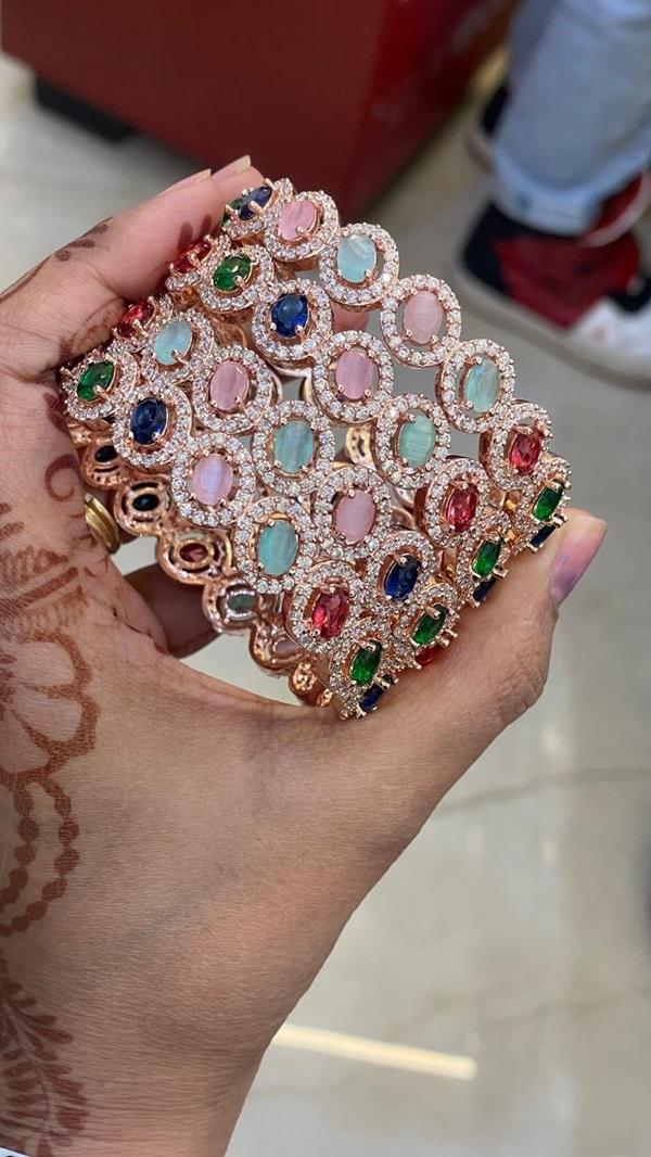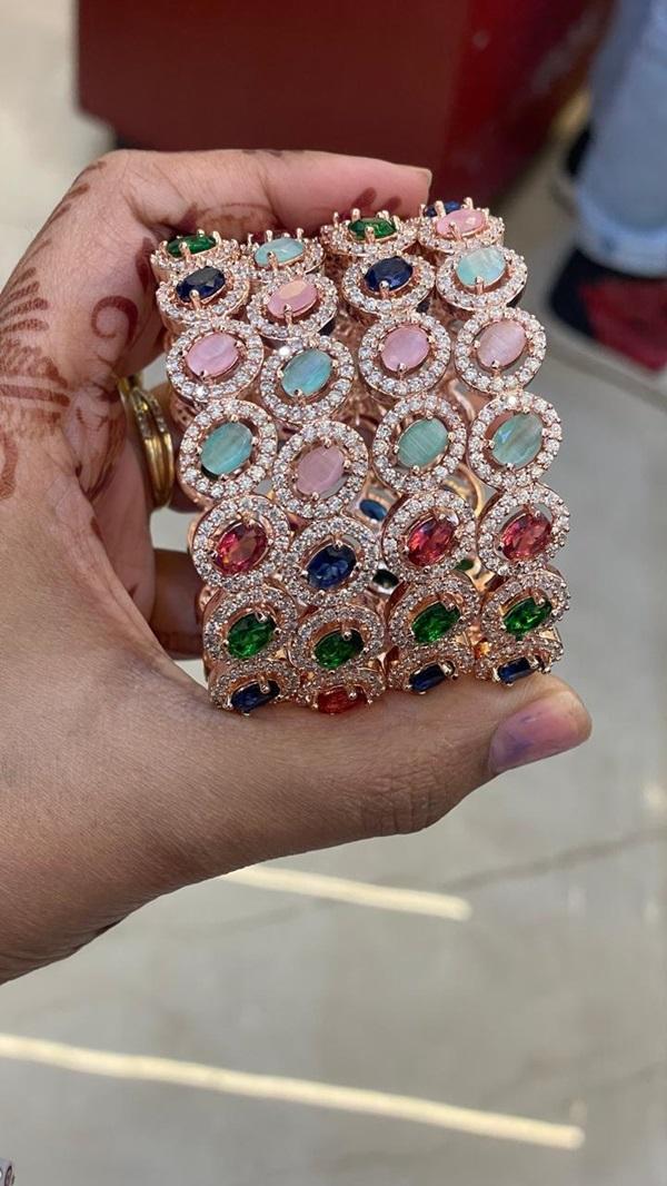 Rose Gold Polish CZ Bangle Set- Multicolor AD Bangles- Set of 2