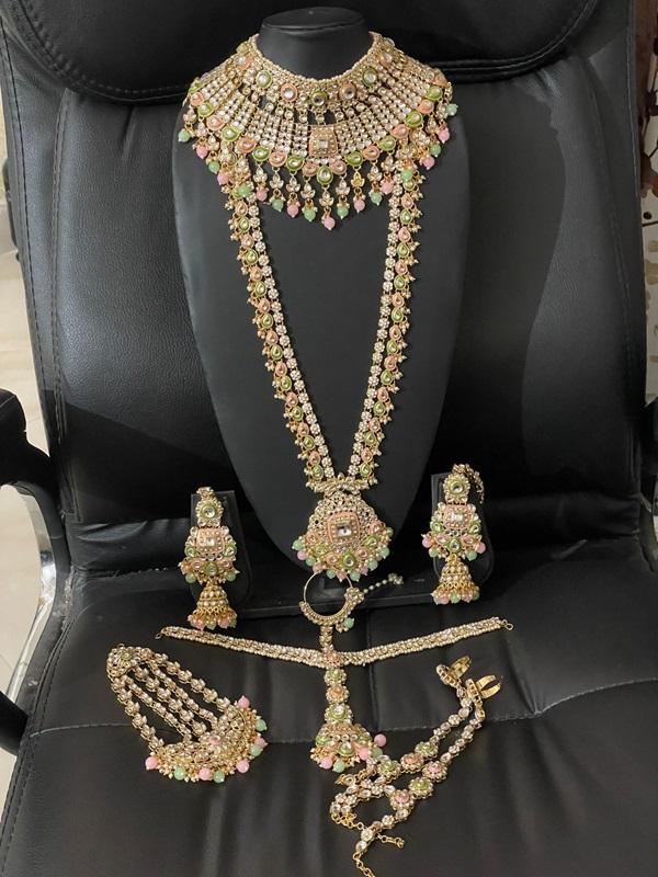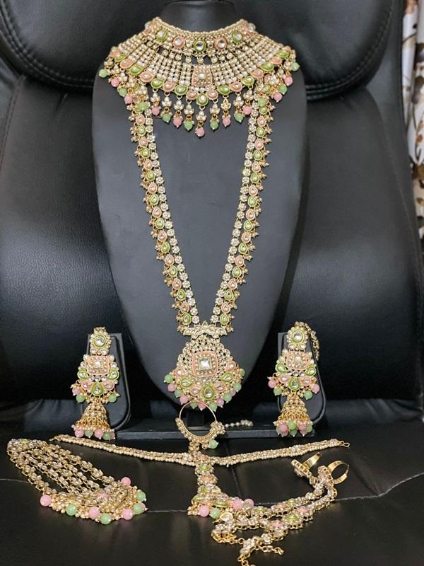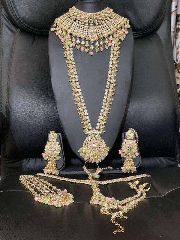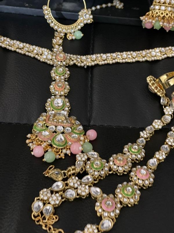 Full Bridal Set- Kundan Bridal Jewellery Set Mint Pink & Green