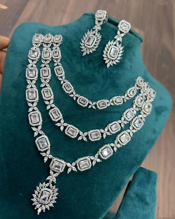 Silver CZ Necklace- Layered Necklace- AD Necklace